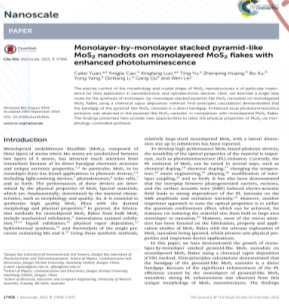 《Mono layer-by-mono layer stacked pyramid-like MoS2nanodots on mono layered MoS2flakes with enhanced photo luminescence》