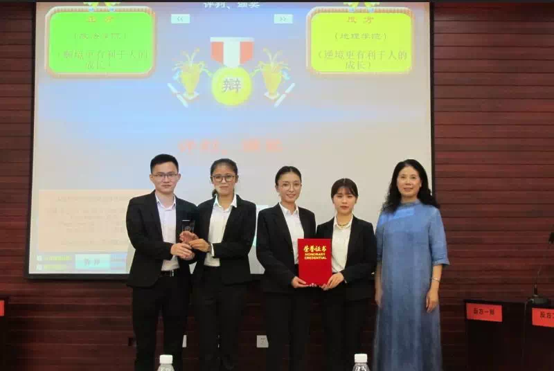 由校研究生院、党委研究生工作部主办,校研究生会承办的2018年第九届学术文化节之“争疑以辩 ・明辨慎思”学术辩论赛于6月5日在我校图文信息中心会议室6201顺利举行。期间,正反双方围绕“顺境更有利于人的成长/逆境更有利于人的成长”这一辩题展开辩论,正反双方势均力敌、各具特色,辩手们在比赛中展示的风采得到了所有评委和现场观众的高度肯定。赛后,音乐学院教授、戏剧影视学和语言学硕士生导师吴艳老师总结评委们的意见和建议并对参赛队伍的表现进行了精彩点评,她肯定了本次辩论赛正反双方的表现,寄语辩手们要继续努力,并针对性地提出了一些问题和不足,经过一番分析,现场的观众和选手都茅塞顿开,比赛结果也明晰了起来。最终,政法学院代表队赢得本次比赛的冠军、地理学院代表队获得亚军,文学院代表队获得季军;比赛评选出了两个最佳辩手,分别是半决赛时的辩手文学院刘雪纯同学和决赛时的辩手政法学院祝雅玉同学。另外还评选了4个队伍获得优秀组织奖。此次活动不仅提升了研究生的思辨能力和创造力、丰富了研究生的生活,同时也激发了研究生自主思考的能力。辩出了精彩、辩出了风格、辩出了我校研究生的青春与活力。