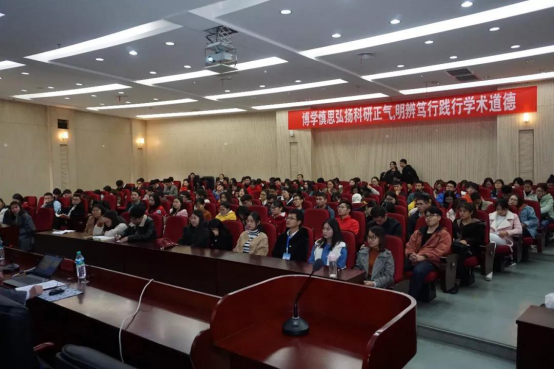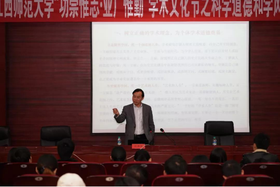 2018年11月23日(周五)14:30,由我校党委研究生工作部及校研究生会主办的江西师范大学功崇惟志.业广惟勤学术文化节之科学道德和学风建设专题报告会在我校图文信息中心6201举行。报告会特邀武汉大学艺术学院教授、博士生导师、中国文艺基地评论副主任汪余礼教授主讲,党委研工部宋友荔部长主持。