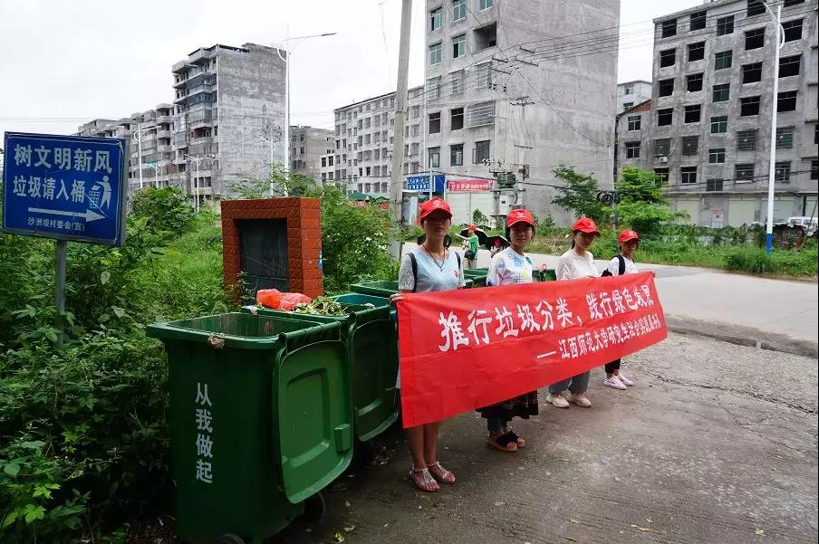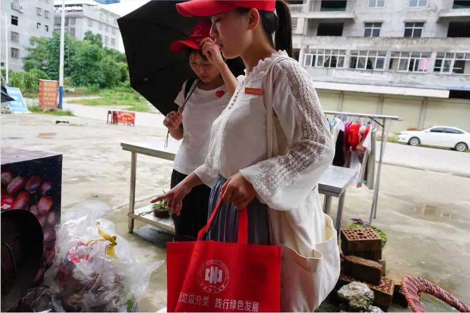 习近平总书记在2019年6月对垃圾分类工作作出重要指示,强调实行垃圾分类是社会文明水平的一个重要体现。江西师范大学研究生“推行垃圾分类,践行绿色发展”社会实践服务队赣州小分队积极响应总书记号召,于7月11日6点40分准时出发前往瑞金市沙洲坝乡开展“垃圾分类”实地调研活动。虽然当地细雨绵绵,但并未浇灭队员们的热情,依然顶着恶臭近距离查看垃圾桶内的垃圾分类情况,甚至亲手翻找垃圾桶内不同种类的垃圾,以求得出准确的、符合事实的结果。