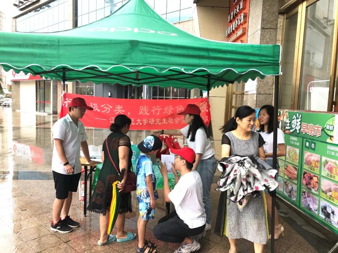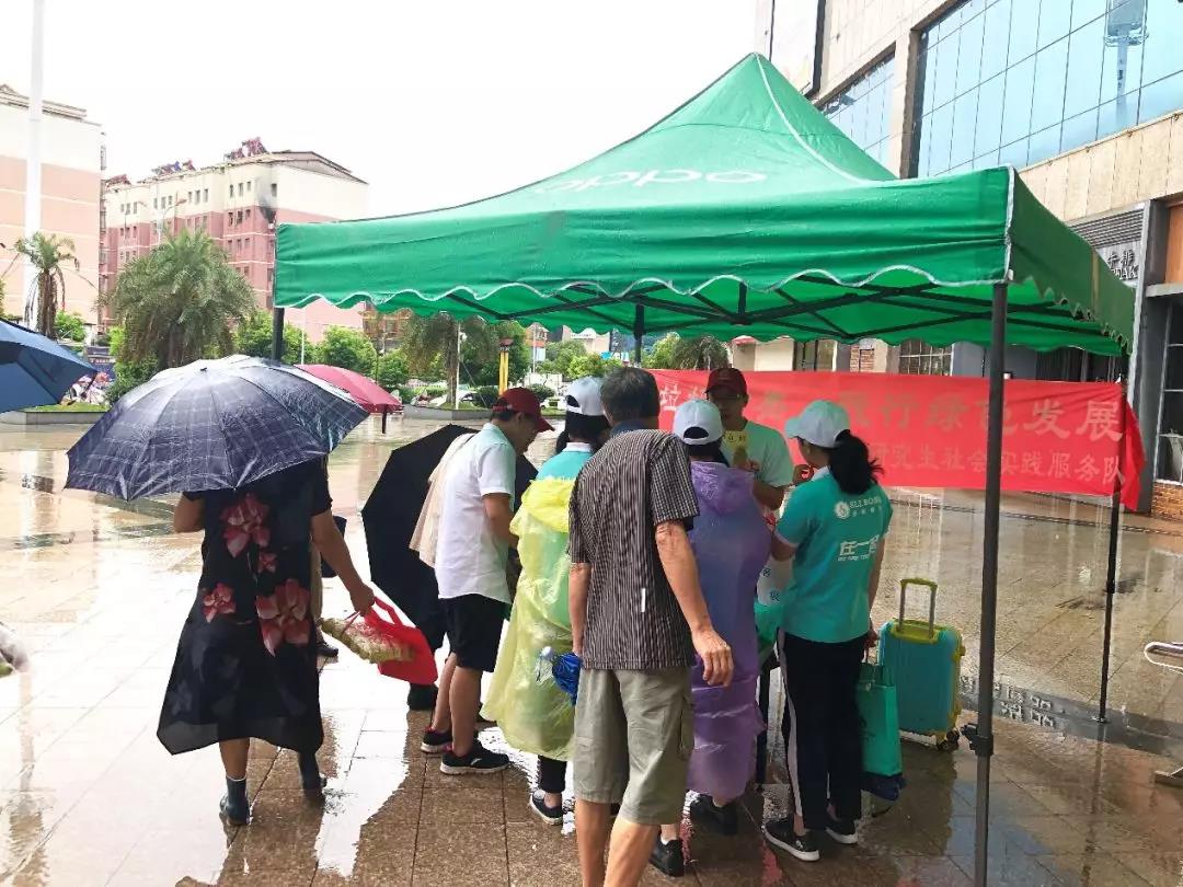 7月13日一大早,活动如期旅行。虽然大雨磅礴,却丝毫浇灭不了队员们向市民宣讲垃圾分类知识的热情,用饱满的热情向市民递送宣传手册。