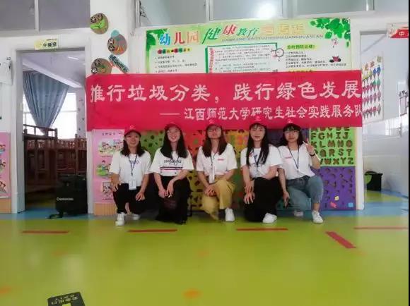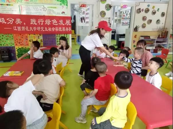 为响应党的十九大,创建文明城市,进行生态文明建设,将开展绿色发展、垃圾分类等知识普及宣传教育,江西师范大学研究生“推行垃圾分类,践行绿色发展”社会实践服务队上饶分队于2019年7月15日,在江西省上饶市信州区小螺号幼儿园围绕“环境保护我先行,垃圾分类我能行”主题开展垃圾分类普及活动。