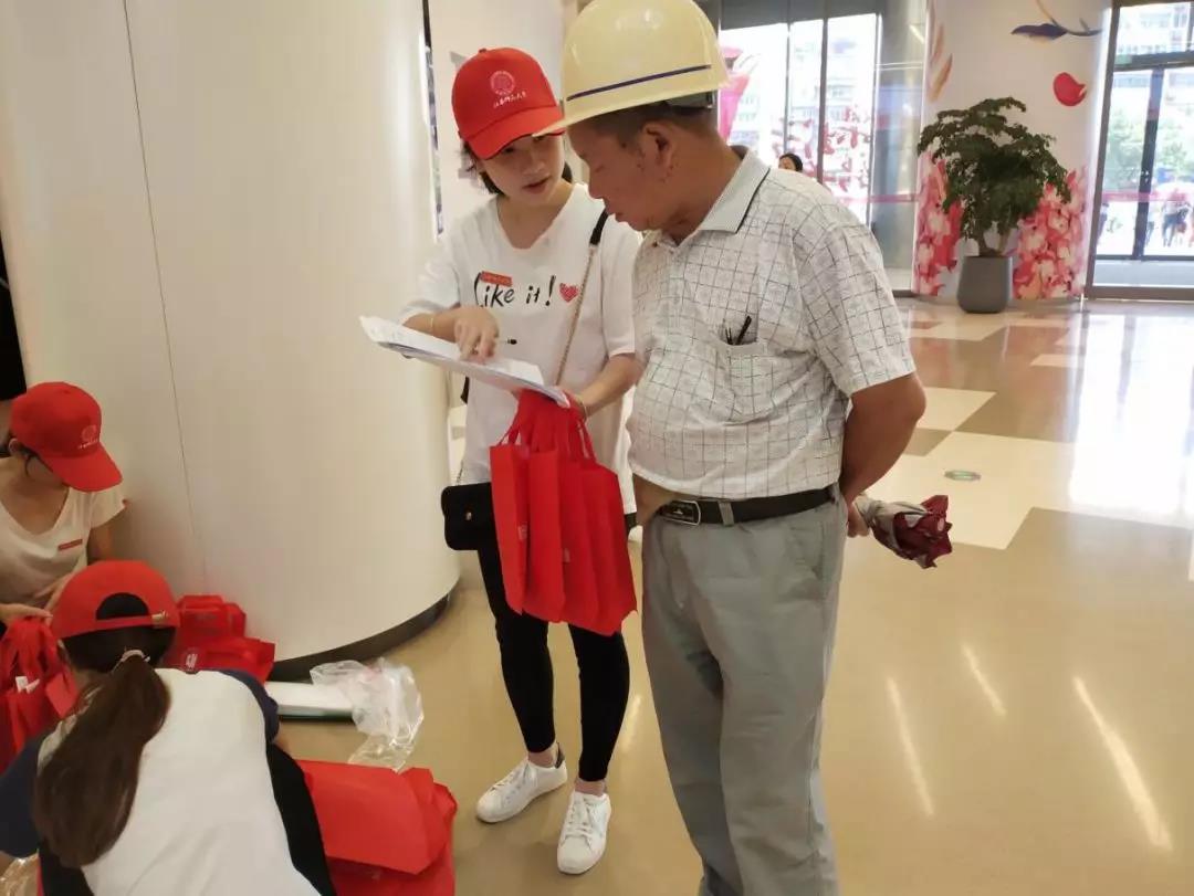 在活动过程中,队员们分发了调查问卷,了解当地民众对于垃圾分类的看法,收集相关数据,并且分发了宣传单让人们对垃圾分类、垃圾的去处以及垃圾分类的意义了解得更加透彻。随后队员们还邀请群众在海报上签名,并赠送了环保袋和垃圾袋等小礼品。