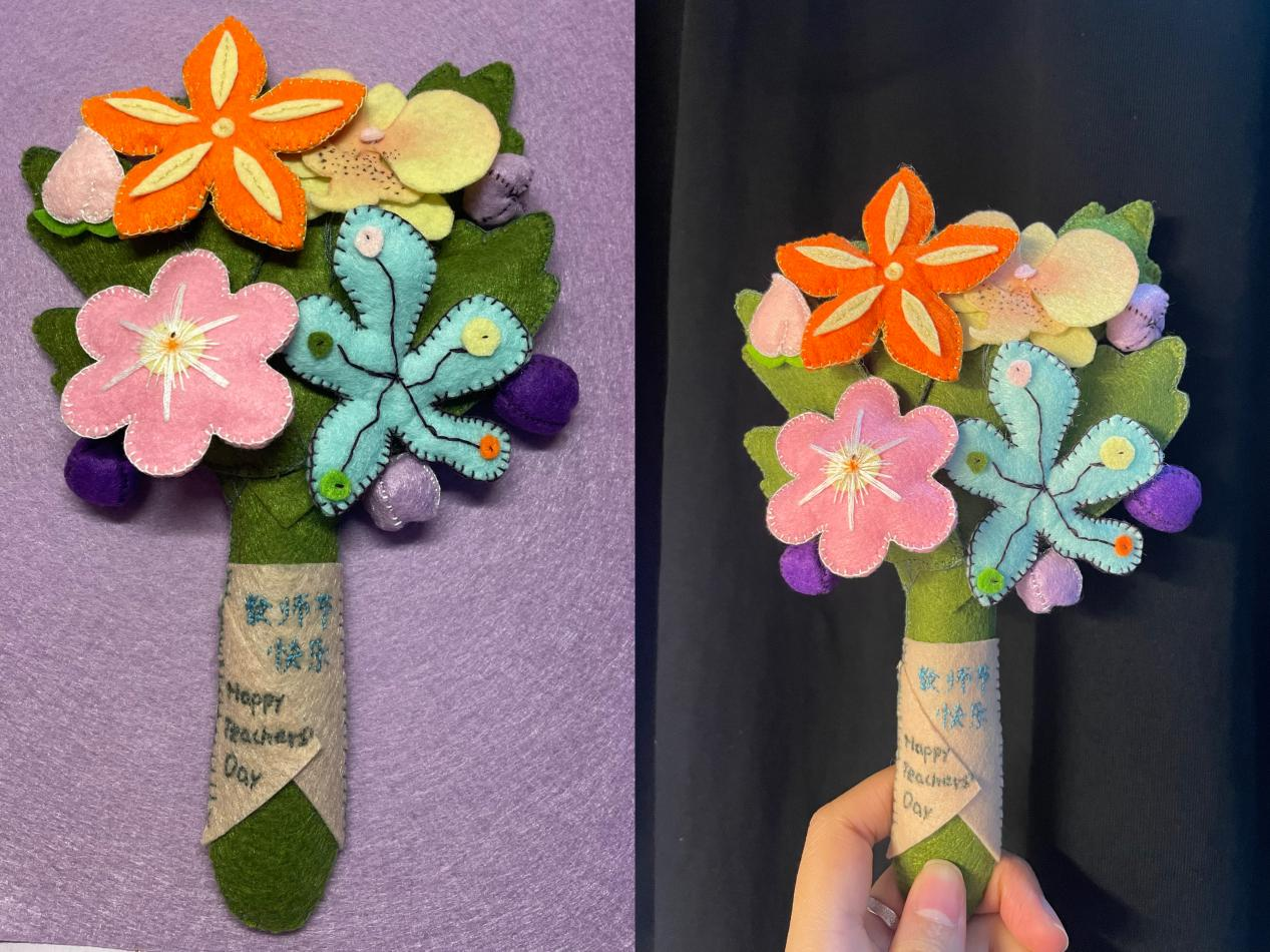 《师韵花笺》是一组为教师节精心打造的创意花艺作品。以质朴牛皮纸袋为载体,手写“传道授业”“春晖四方 桃李天下”等字样,融入兰草、蝴蝶等中式元素,搭配粉白玫瑰、小雏菊等花艺,或饰以雅致丝带蝴蝶结,将对师恩的感念凝于花与笺的交融间。它以花为语,以笺为托,把师者的谆谆教诲与学子的感恩之心,化作可触可感的艺术表达,是一份兼具文化韵味与真挚情感的节日献礼,让师韵在花笺的雅致中绵长流转。
