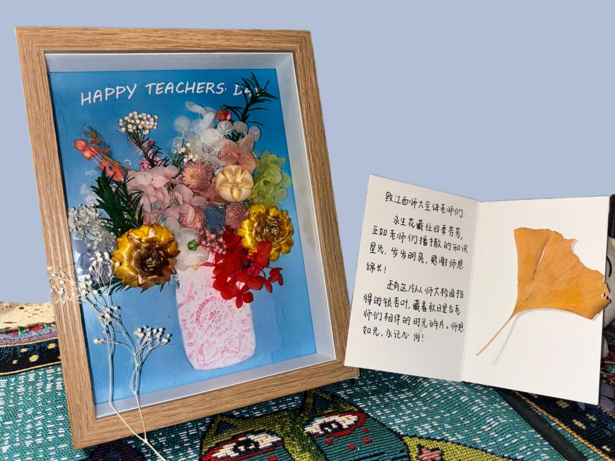 看着那永不凋零的花簇,我想让老师们知道,您们的每一份付出与每一丝关爱,都如这永生花般,在我心里永远鲜活,这份深厚的师恩,我会一直铭记于心。